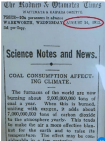 Fossil fuels have been known to be damaging to the environment for more than 100 years, as the clipping below indicates.